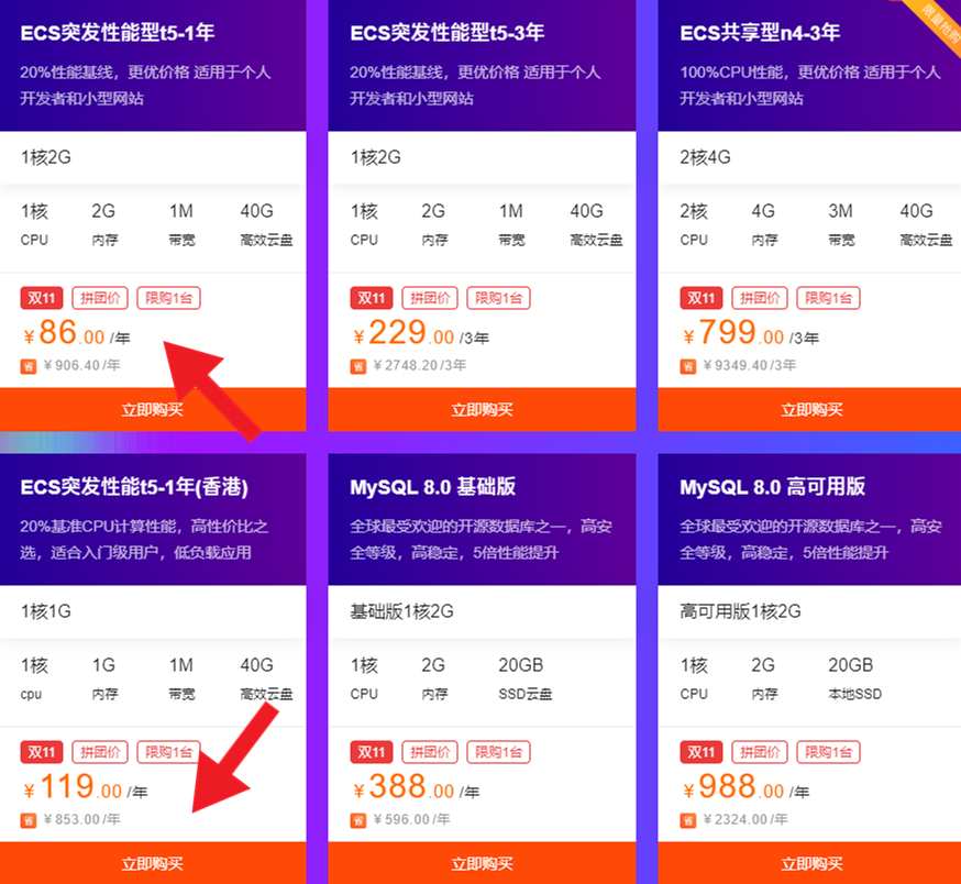 所以已经不是学生的网友当然可以赶在这次双11选择比学生机更划算的T5实例 , 推荐大家直接购买T5实例3年版。
